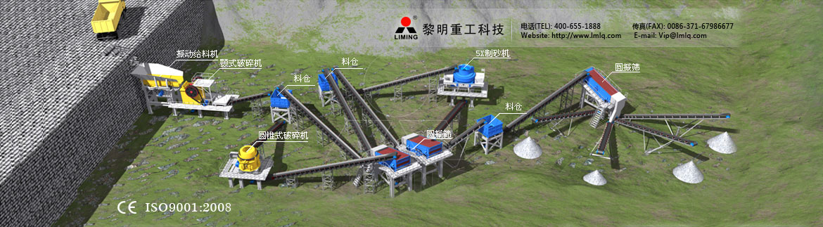 砂石料生產(chǎn)線基本工作原理為:物料集中送進(jìn)料倉,經(jīng)過破碎制砂設(shè)備依次進(jìn)行三重等級(jí)破碎,其間通過輸送機(jī)連接到振動(dòng)篩,并通過振動(dòng)篩篩分出不同規(guī)格的石料產(chǎn)品和機(jī)制砂。為保護(hù)環(huán)境,可配置相應(yīng)的除塵設(shè)備實(shí)現(xiàn)清潔生產(chǎn)。