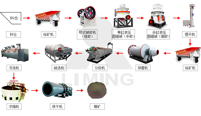 黎明重工30年致力于選礦工藝,為您提供專業的礦物加工解決方案與選礦設備。黎明重工選礦生產線由顎式破碎機、圓錐破碎機、球磨機、分級機、浮選機或磁選機、濃縮機和烘干機等主要設備組成,配合給礦機、提升機、傳送機可組成完整的選礦生產線。根據不同礦石的用途,配置相應專業的生產線方案。