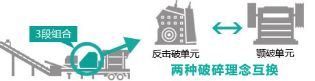 一種車身為8種機型通用,喂料單元互換系統、破碎單元互換系統和篩分單元互換系統,只需再投資單機設備成本,短時間內,即可在同一車身上實現不同型號喂料單元、破碎單元和篩分單元互換系統,整機各系統之間的更好匹配,適應場合更廣泛,破碎功能更完善,客戶的消費品得到體現。