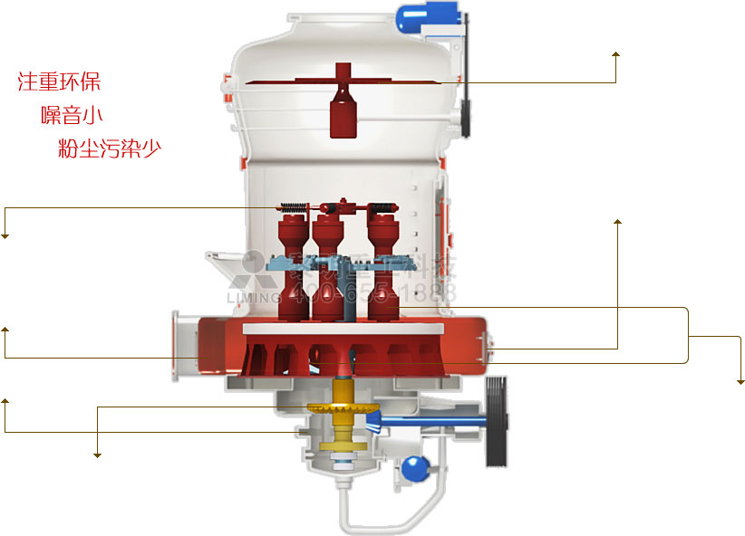 曲面可換刀刃鏟刀,特殊磨輥及磨環結構設計使粉磨效率提高、使用成本降低