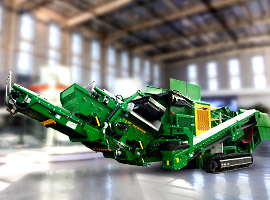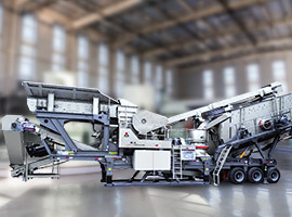 720mm的花崗巖原料首先進入K3C110-1粗破移動站進行一段破碎,粗碎后的物料由皮帶輸送機送入KH300-2中細碎篩分移動站進行進一步破碎,達到成品粒度31.5mm的物料由成品輸送帶輸出為成品,未達到31.5mm的物料從振動篩返回移動站重新加工,形成閉路循環。