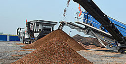 我們為其配置了粗碎移動站KE600-1(給料機TSW0936+顎破PE600×900)和中細碎篩分移動站KF1214-2(反擊破PF1214+振動篩4YZS1860)的移動破碎生產線,振動給料機將500mm以下的送入顎破進行初級破碎,然后再送入反擊破進行二級破碎,通過振動篩篩分出客戶需求的成品0-6mm、6-10mm、10-14mm、14-20mm。