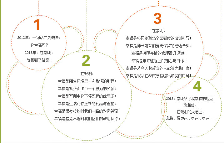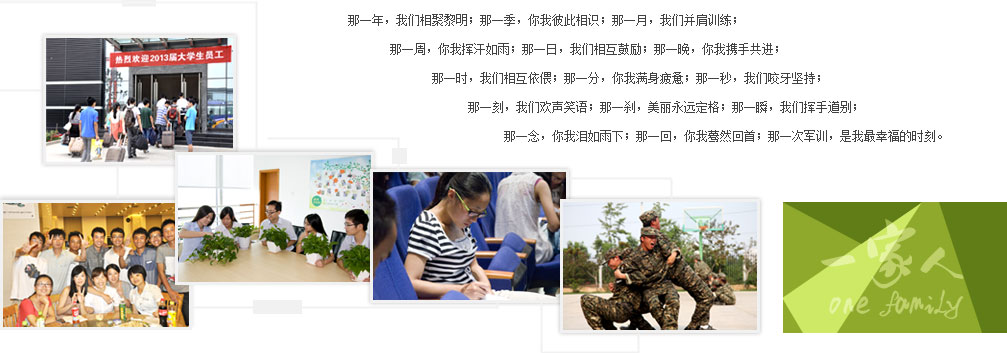 欣受秦嶺祥云之庇護,感懷巴山濺淚之春秋,吐納秦皇遺風之氣息,果腹八百沃土之簞食。久居秦川,未有單刀赴會之旅,不曾料想,今竟衣食宿寄于他鄉…… 黑紅的背景,綠色的園區,無論是軍訓還是培訓,這些點綴和值得銘記的時刻,早已和黎明精神一起幻化成了向上的動力……美好的未來就在不遠處,用一邊欣賞一邊散 步的心情去追求美好,迎接成功吧!