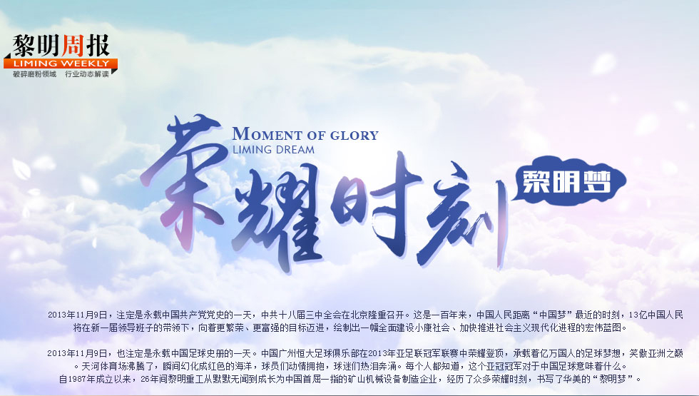自1987年成立以來,26年間黎明重工從默默無聞到成長為業內知名的礦山機械設備制造企業,經歷了眾多榮耀時刻,書寫了華美的"黎明夢"。
